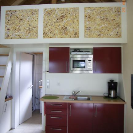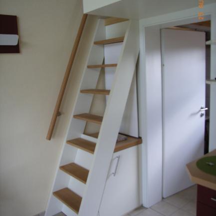 Kleiderschrank mit voller Ausnutzung der Dachschräge und Abstellfläche für Fernsehgerät oder ähnlichem.