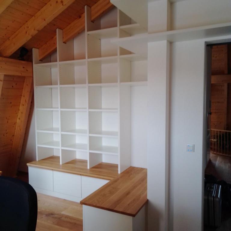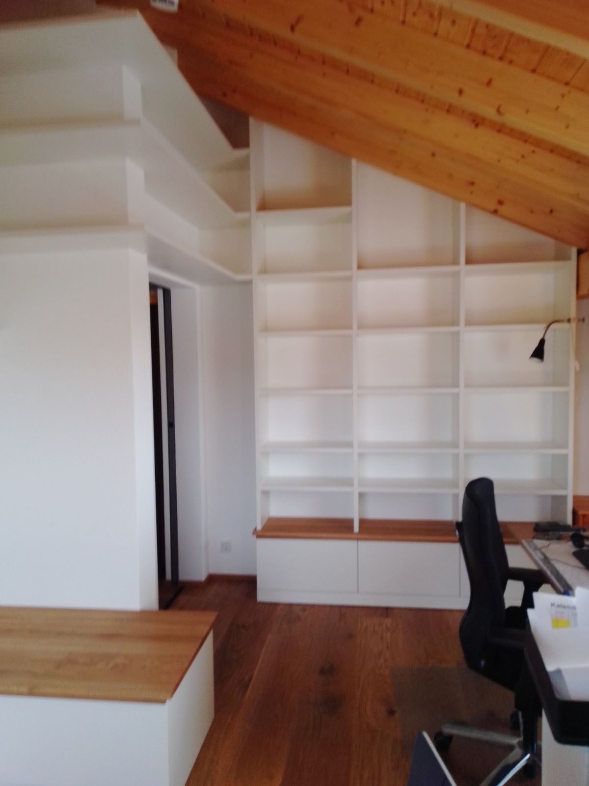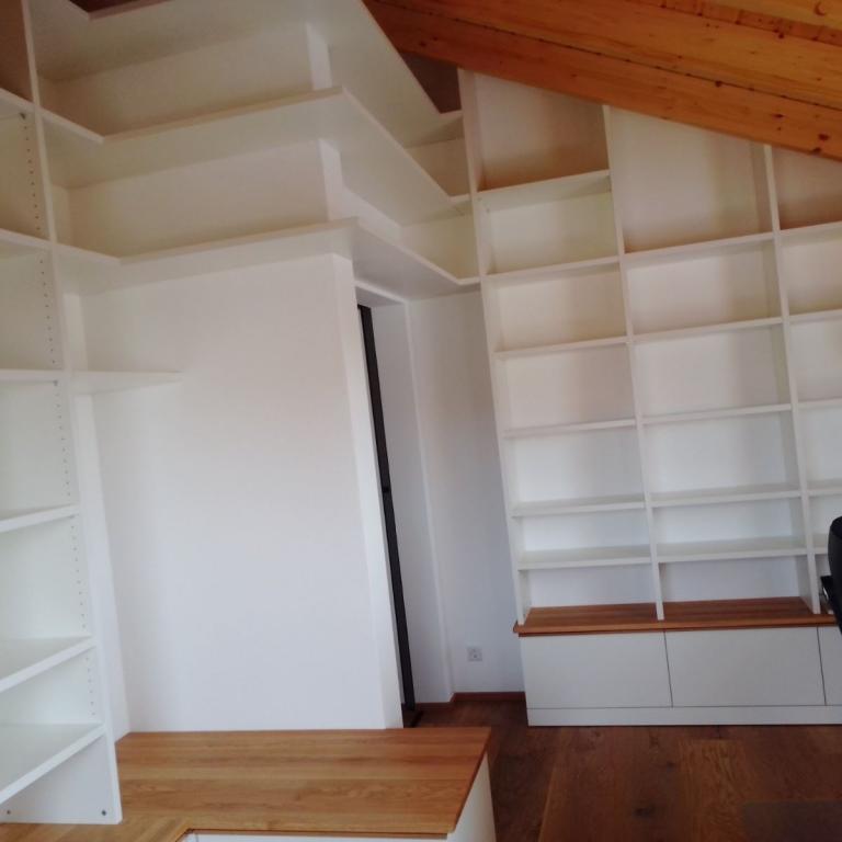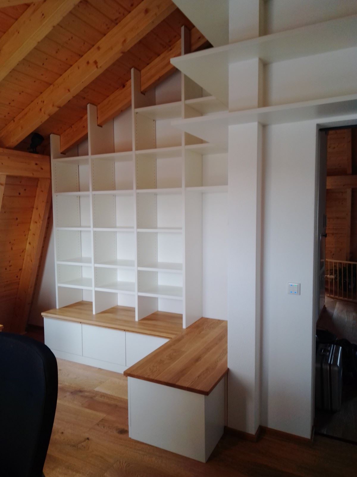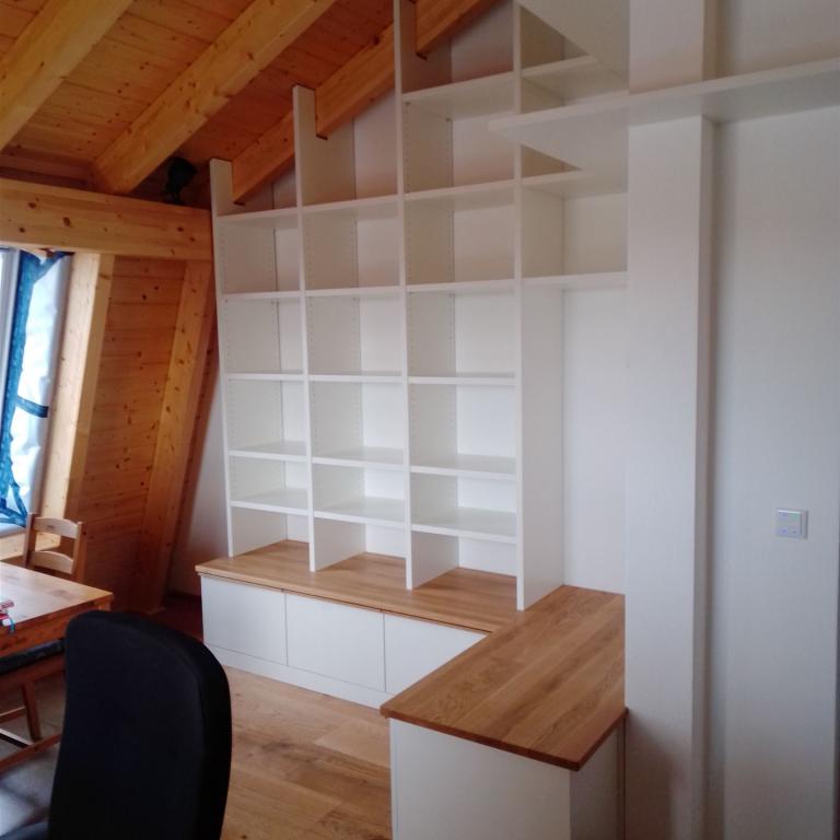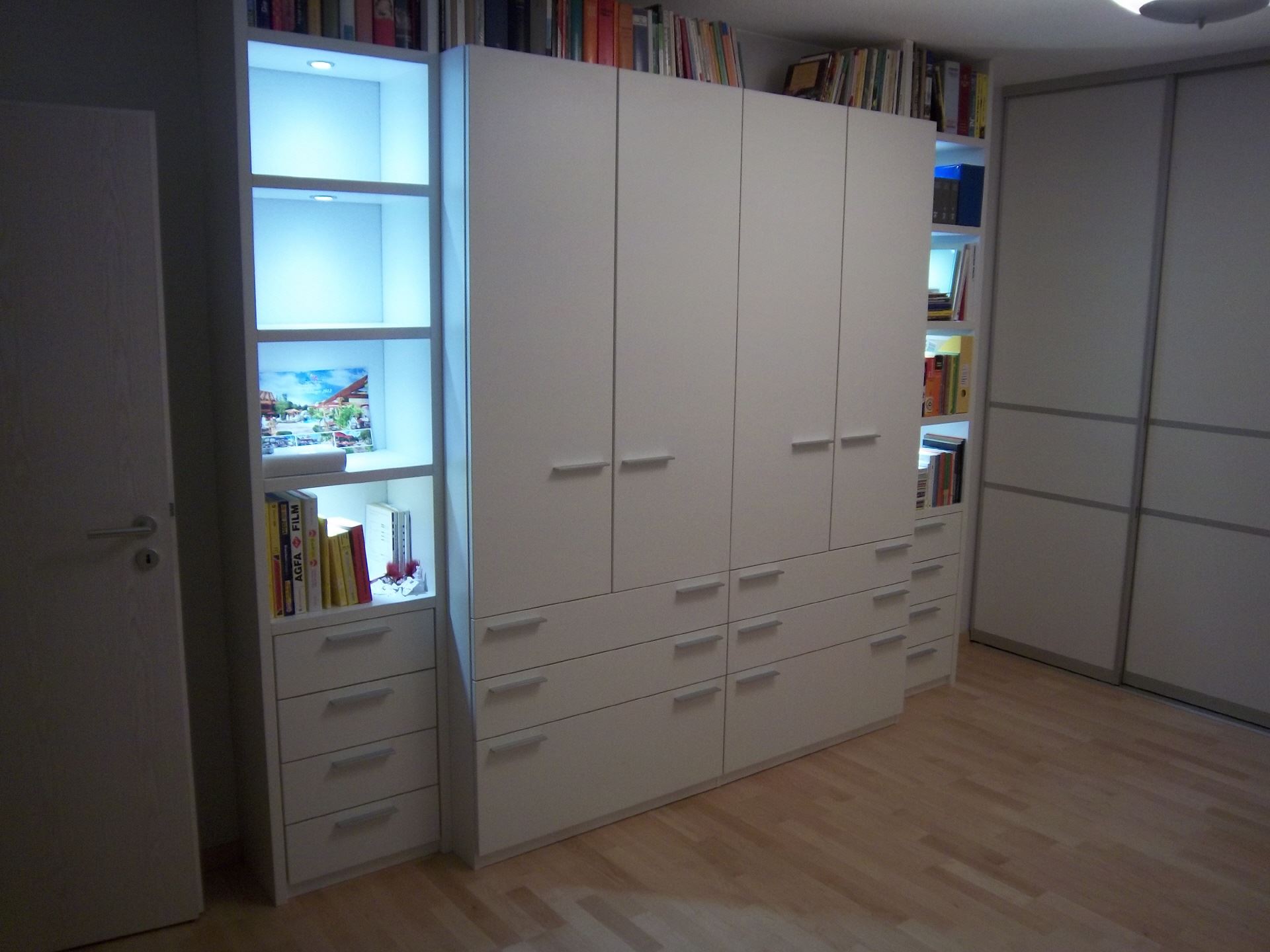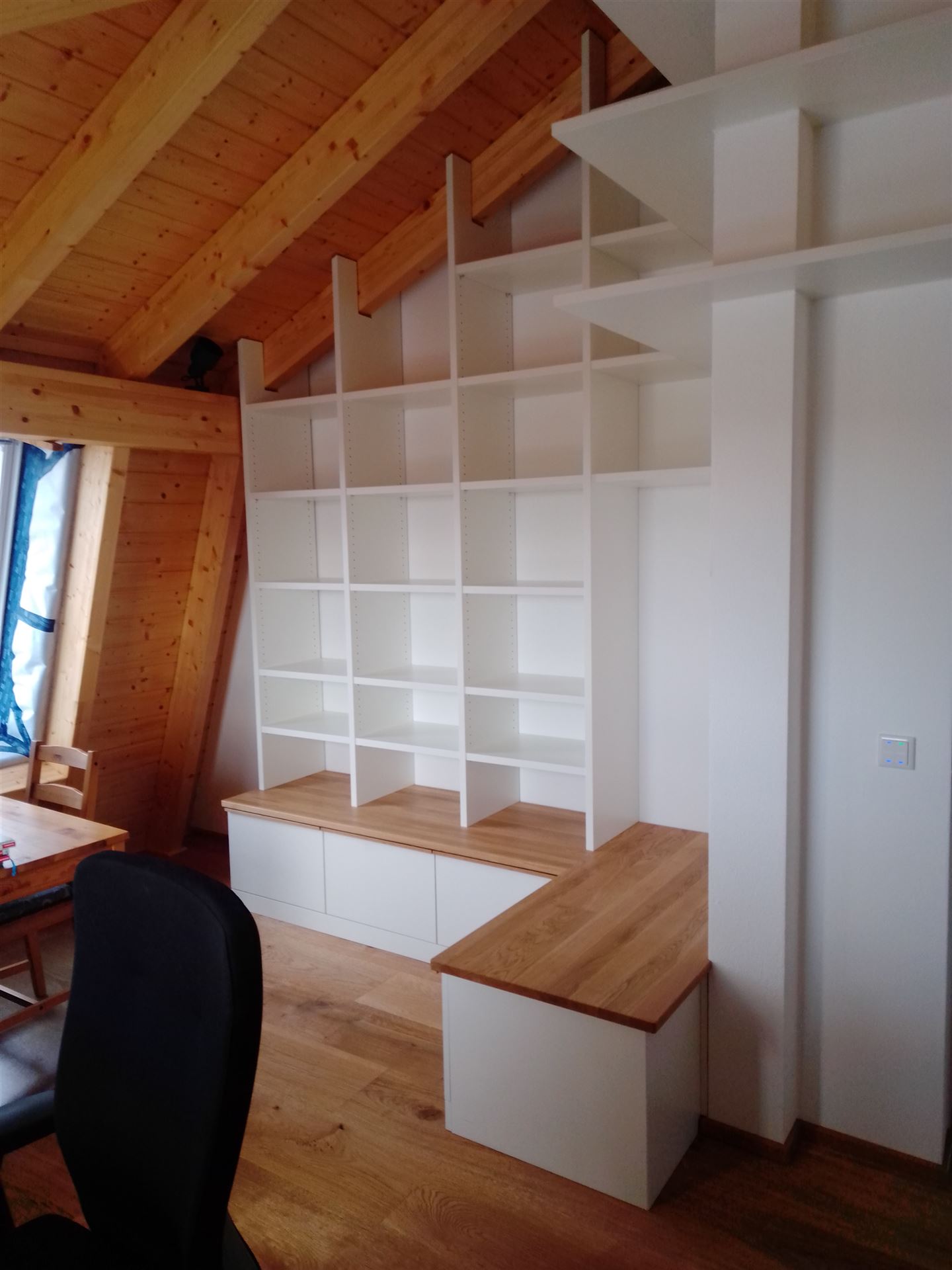 Kleiderschrank mit voller Ausnutzung der Dachschräge und Abstellfläche für Fernsehgerät oder ähnlichem.