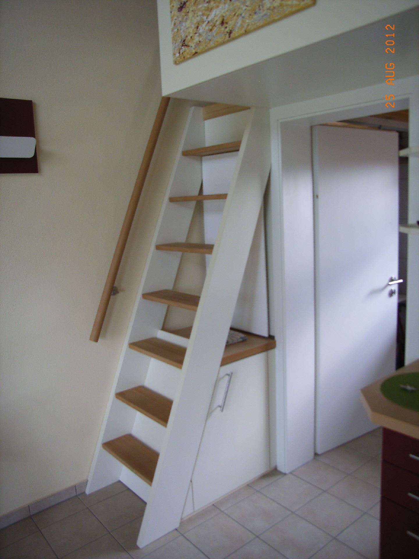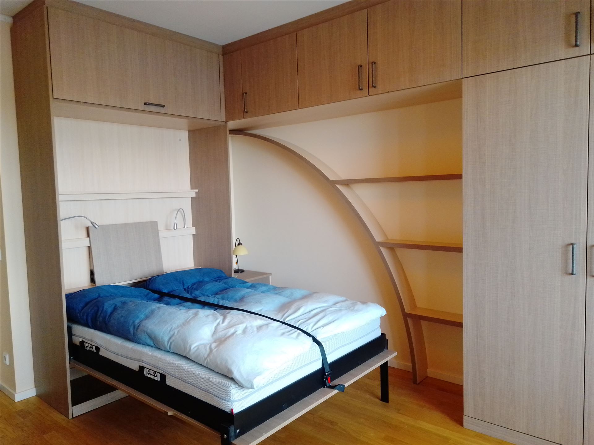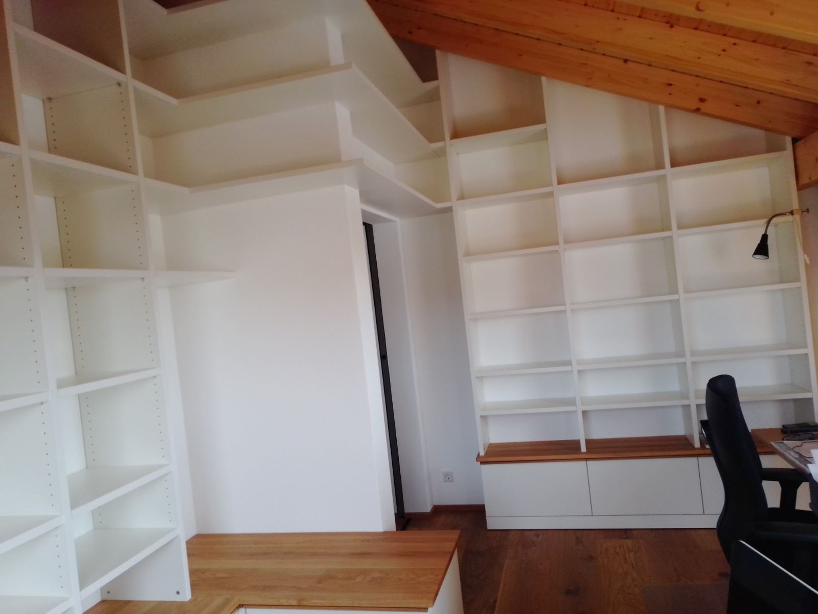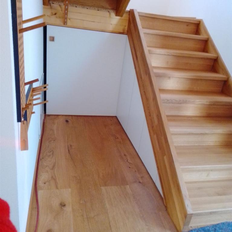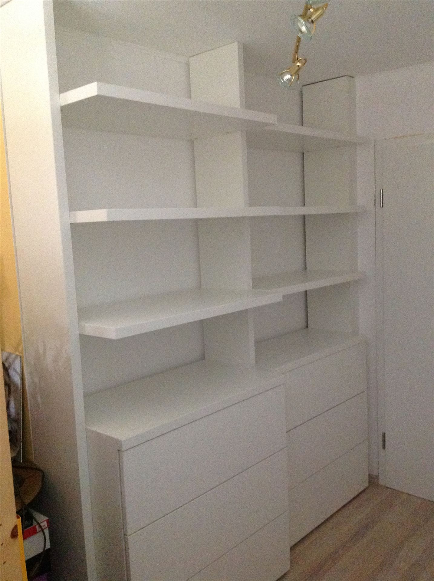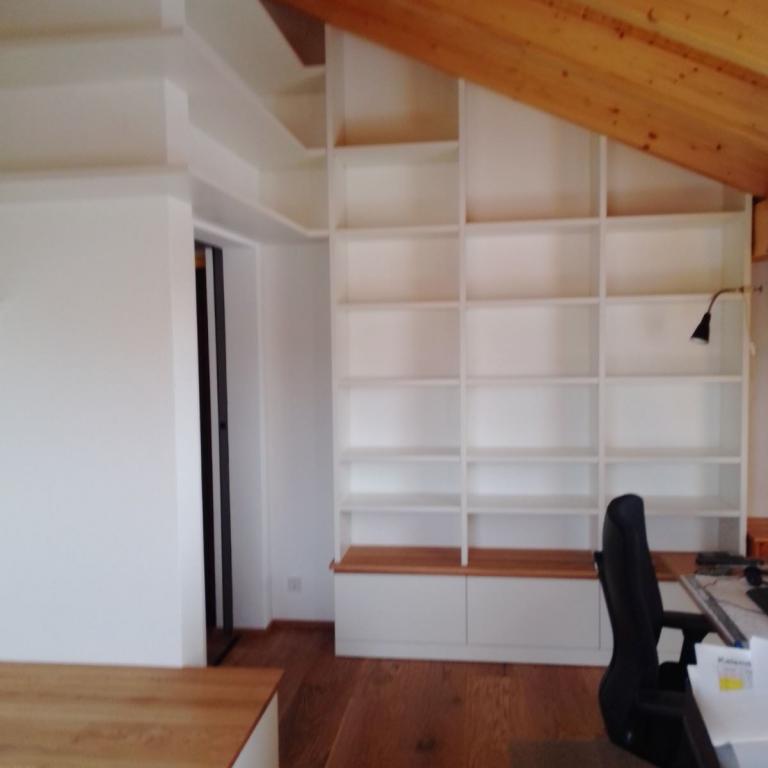 Kleiderschrank mit voller Ausnutzung der Dachschräge und Abstellfläche für Fernsehgerät oder ähnlichem.