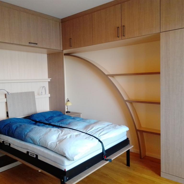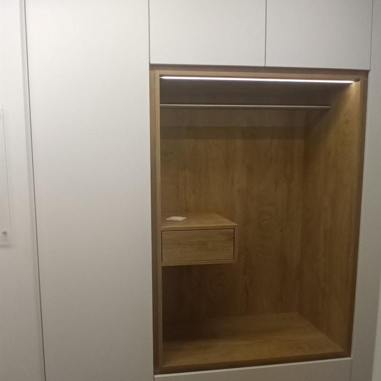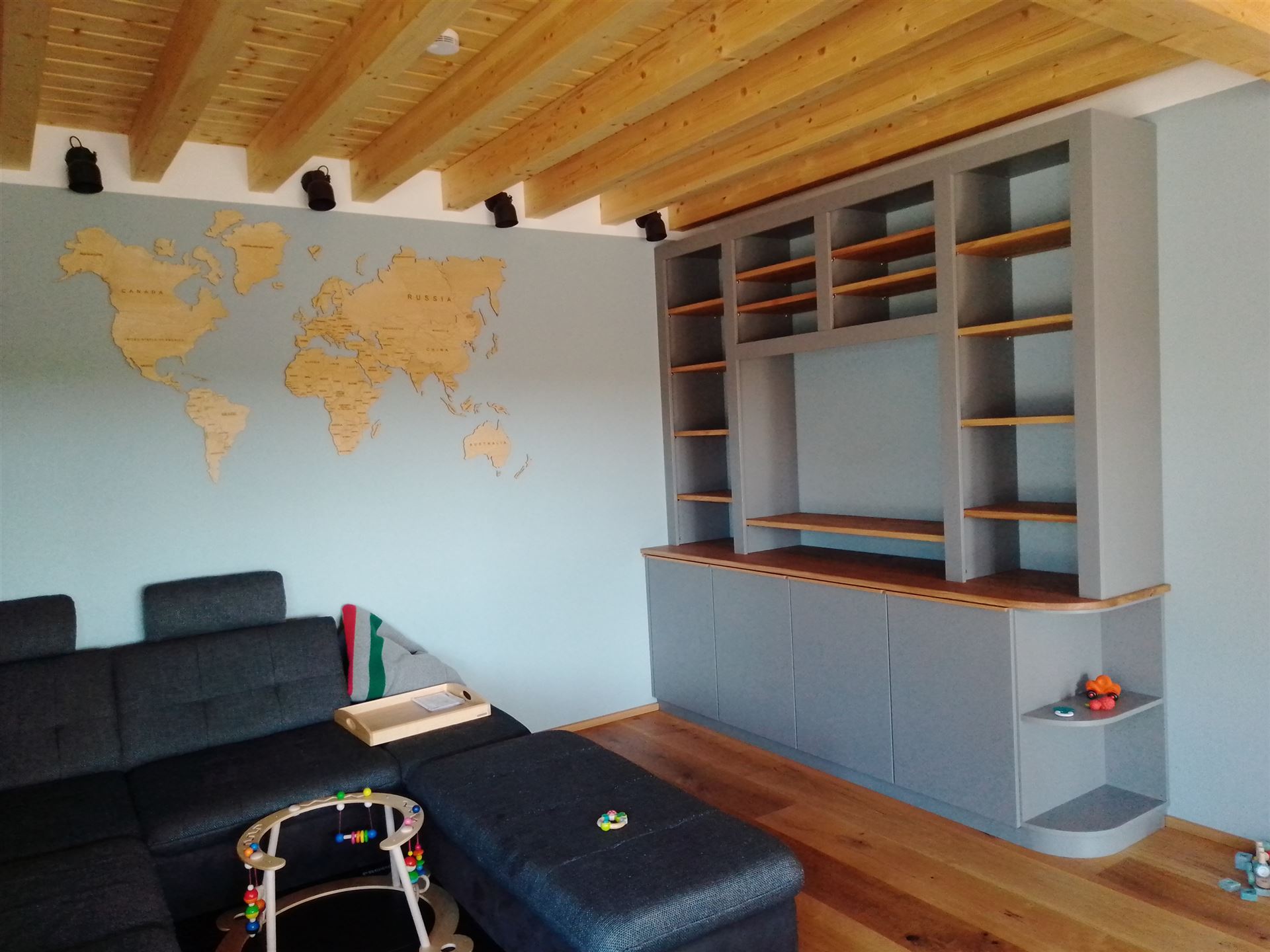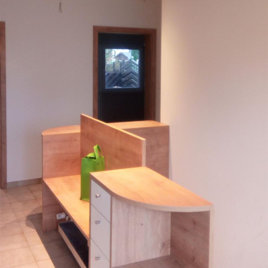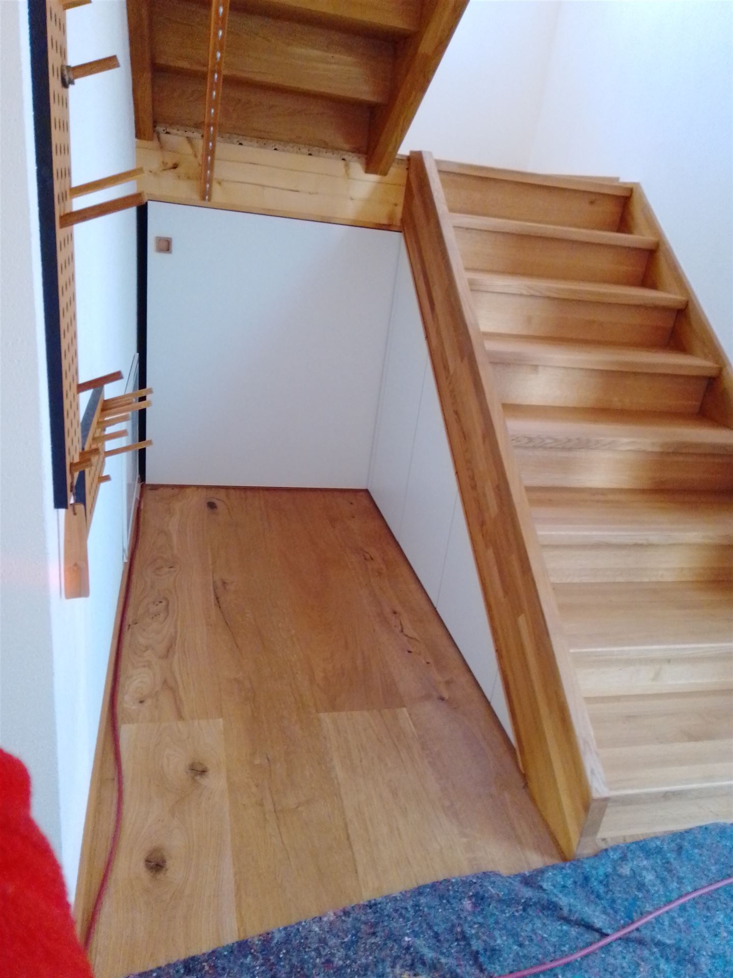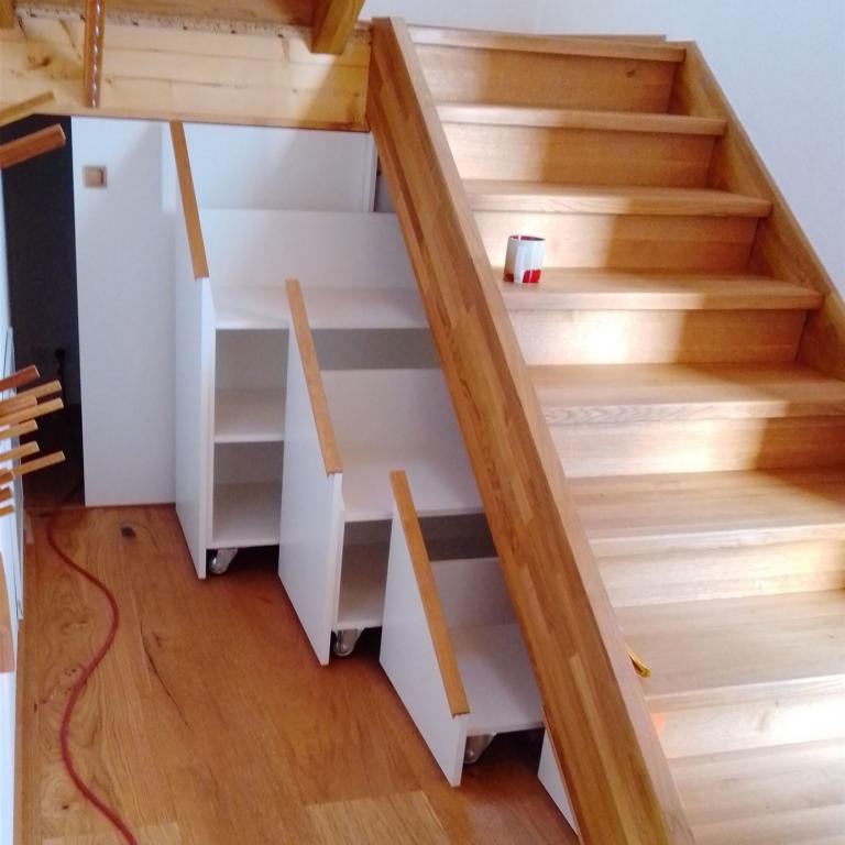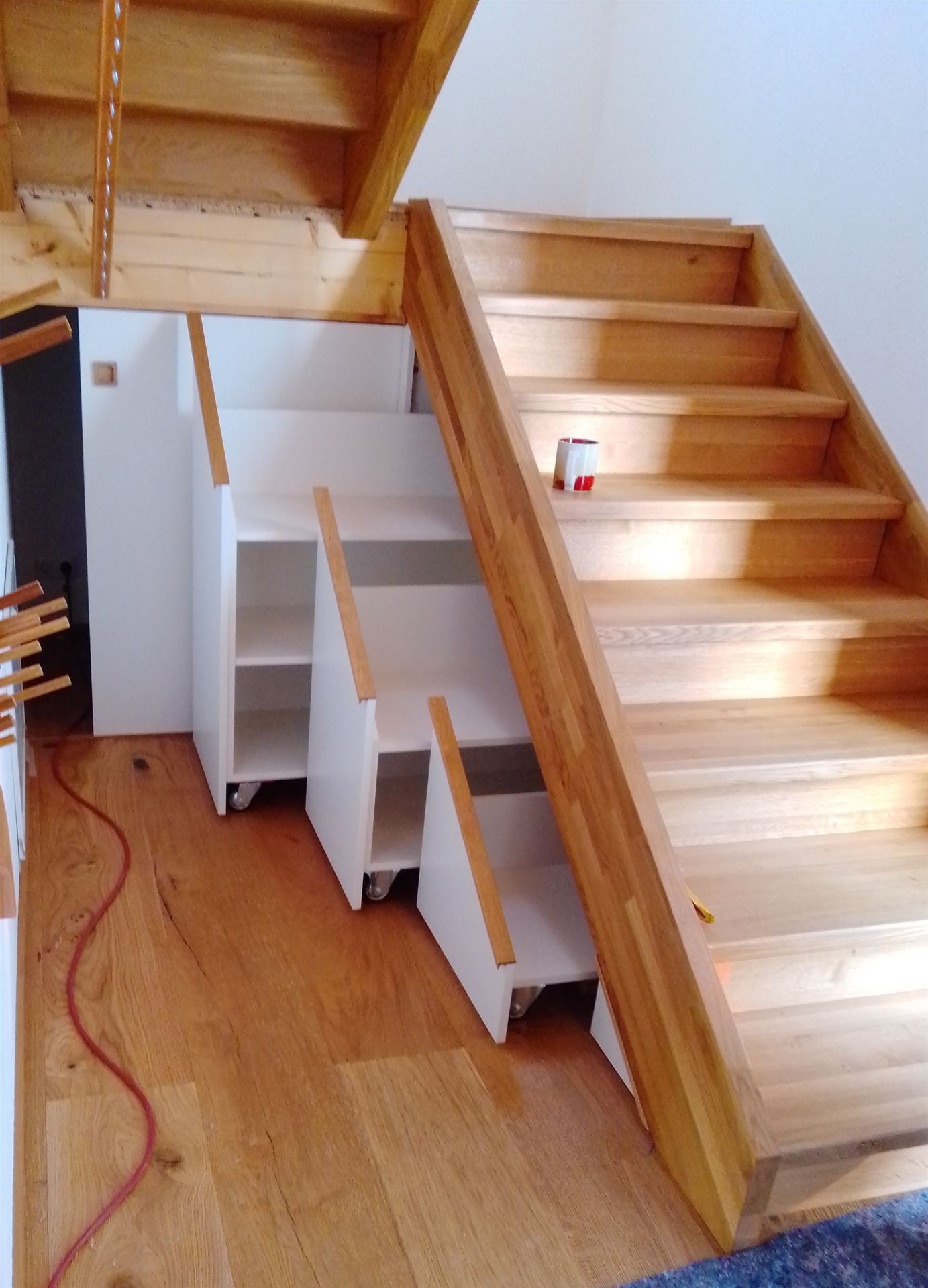 Kleiderschrank mit voller Ausnutzung der Dachschräge und Abstellfläche für Fernsehgerät oder ähnlichem.