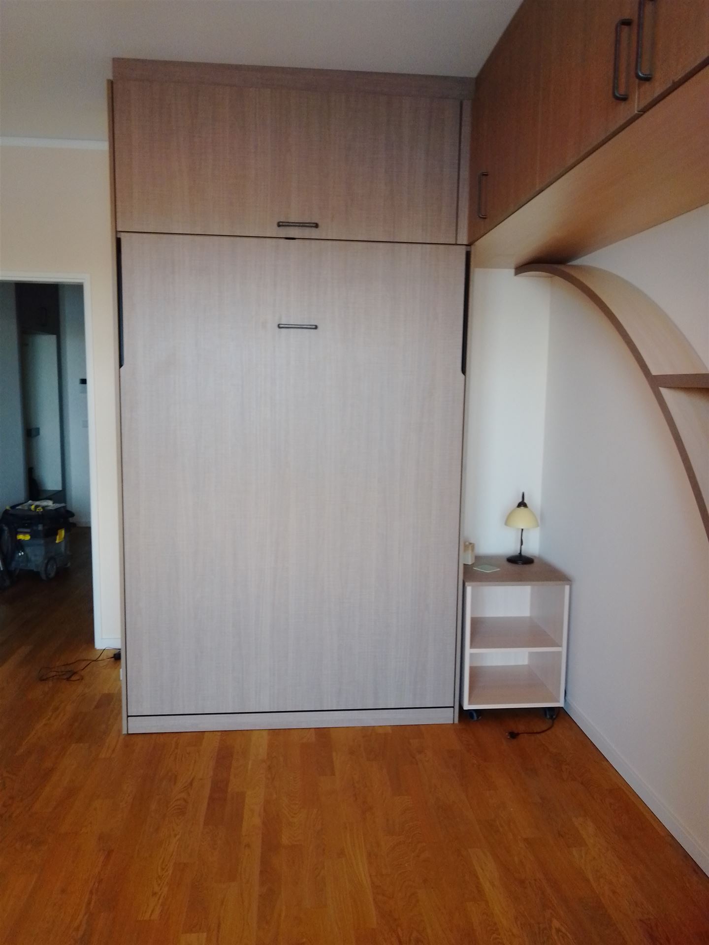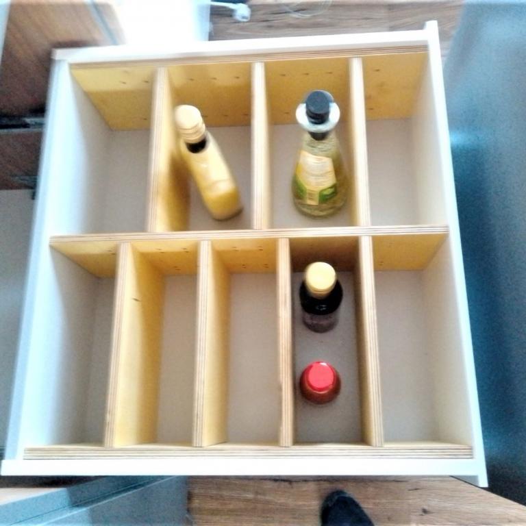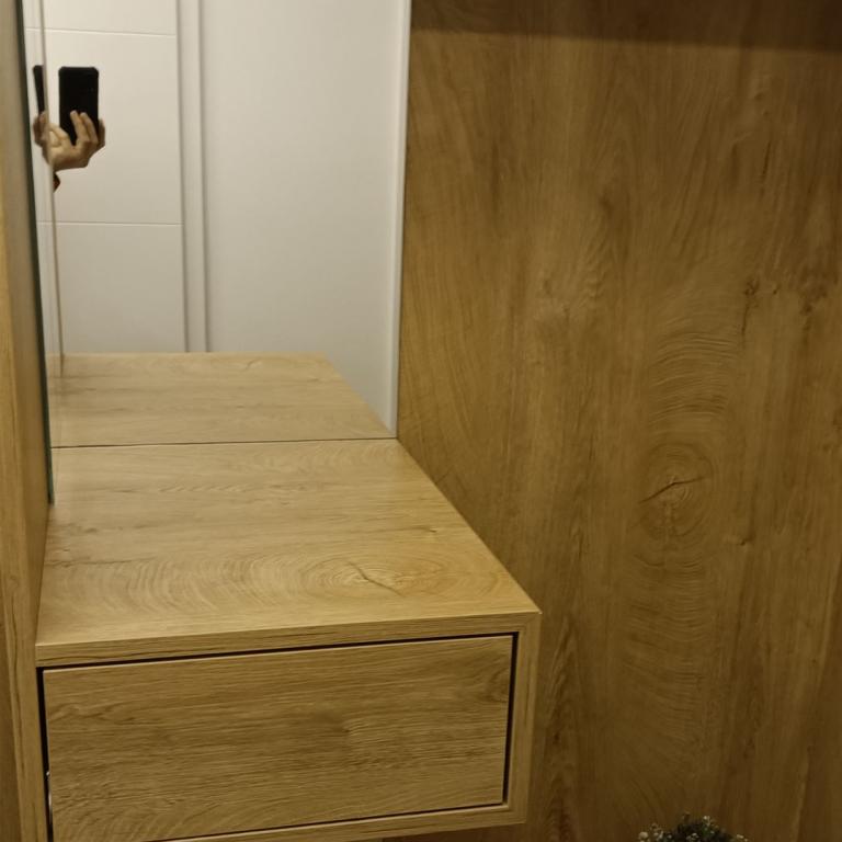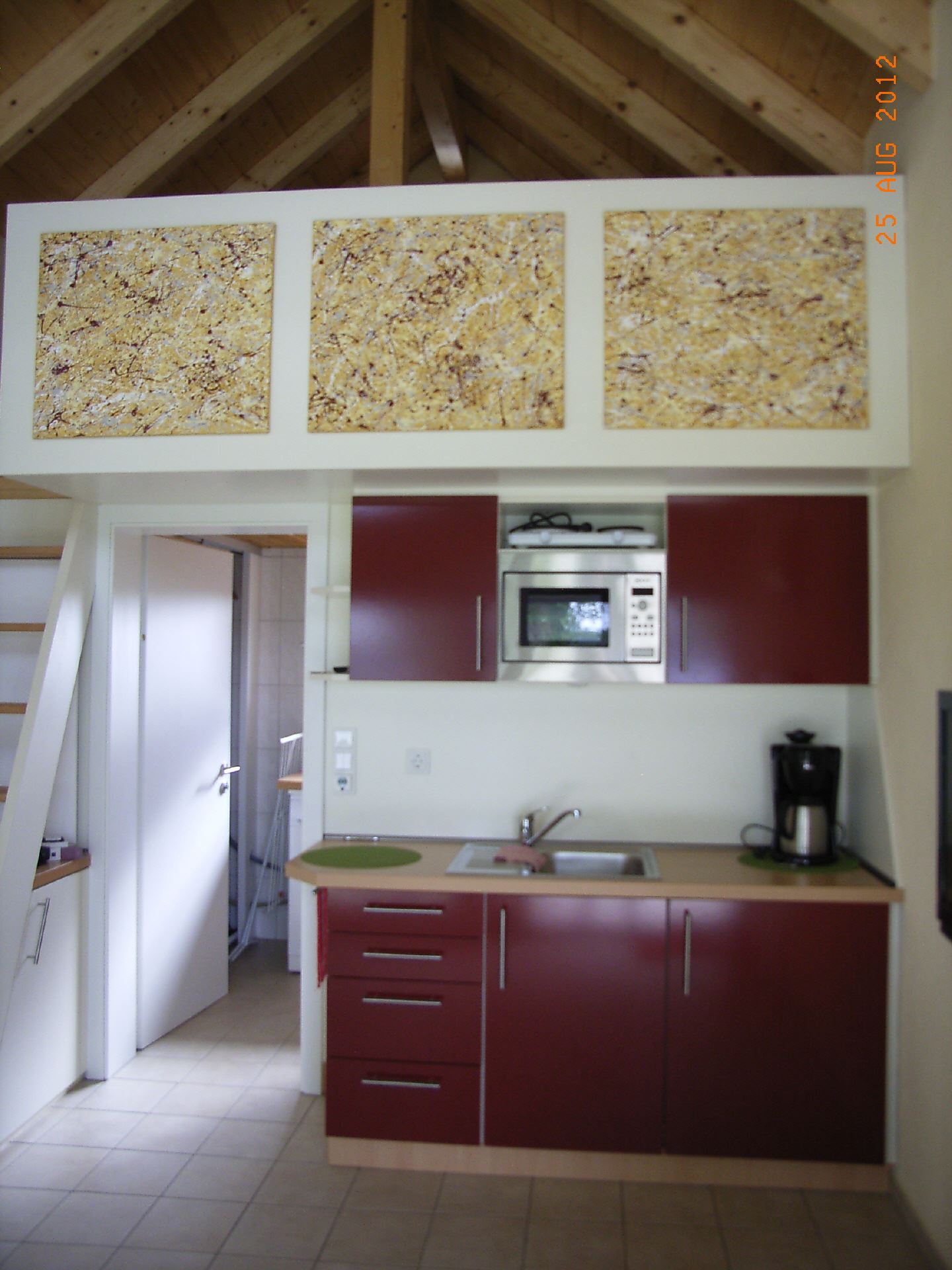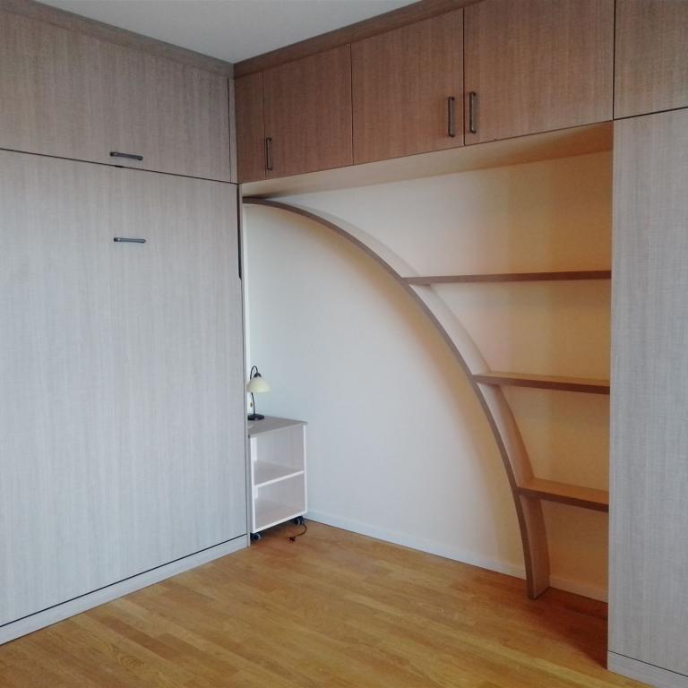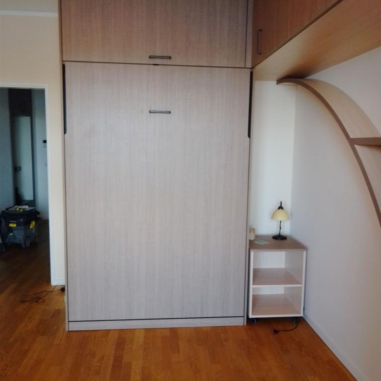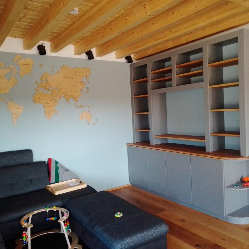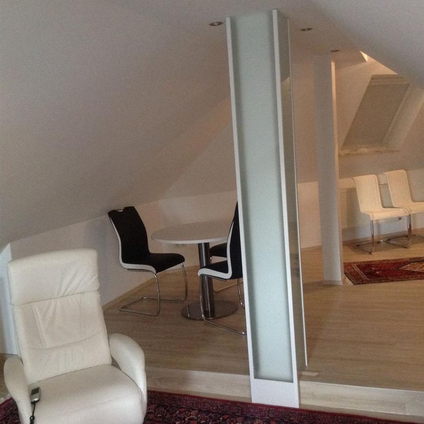 Kleiderschrank mit voller Ausnutzung der Dachschräge und Abstellfläche für Fernsehgerät oder ähnlichem.