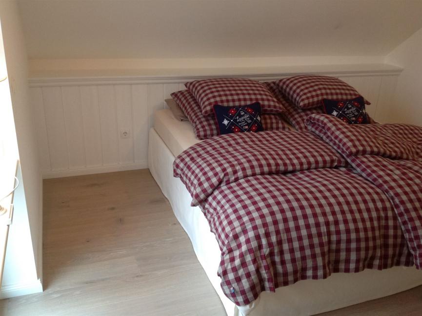Schlafzimmer aus massiver Buche mit geölter Oberfläche.