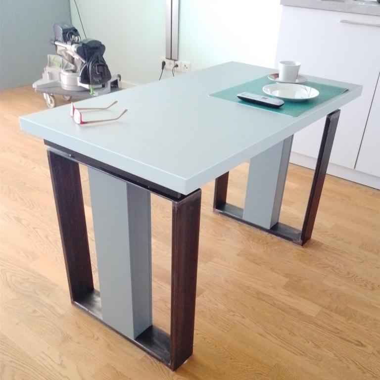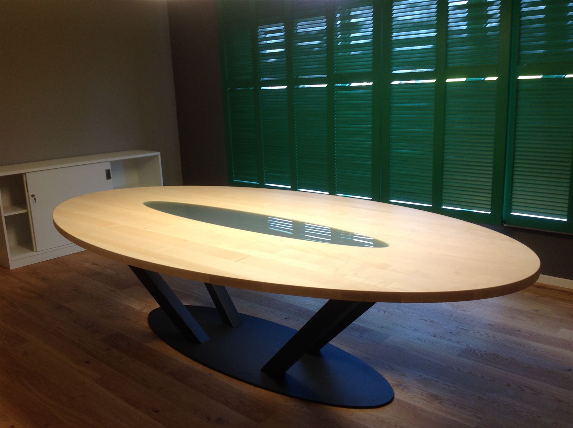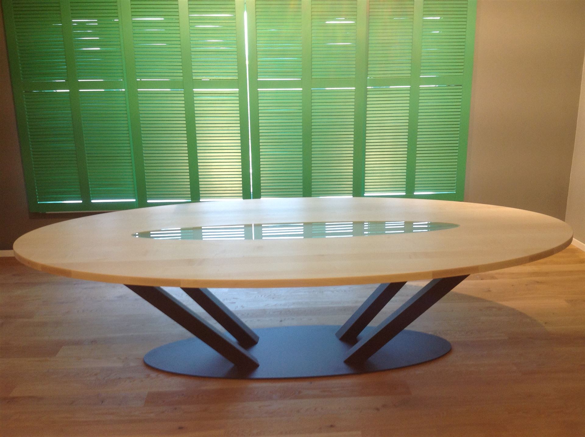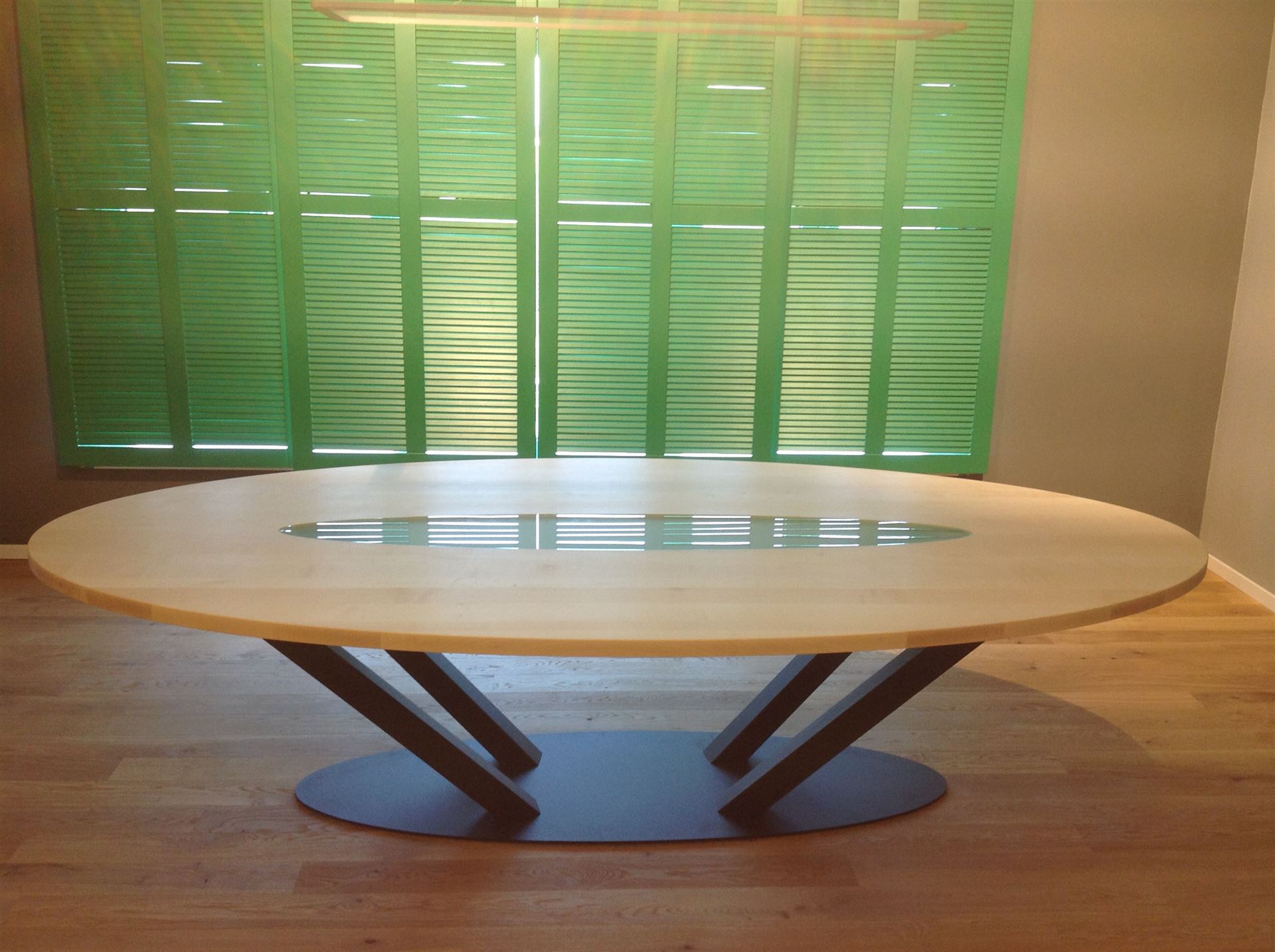 Ovaler Tisch mit Glaseinsatz und Metall Untergestell (Pulverbeschichtet)