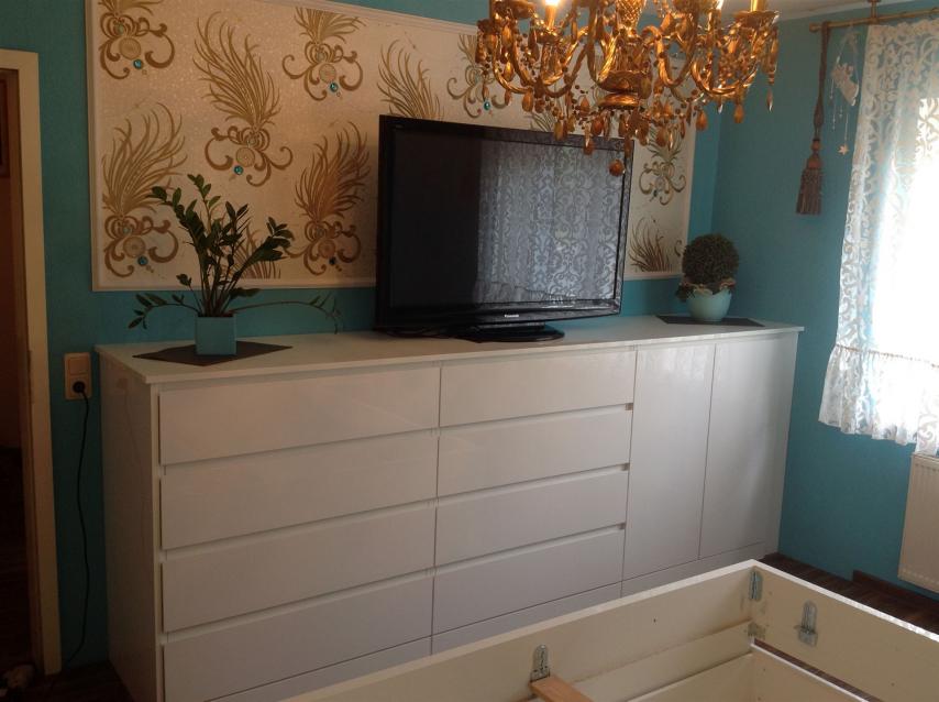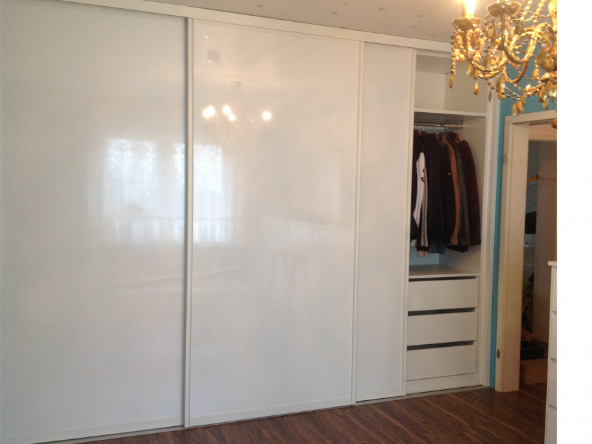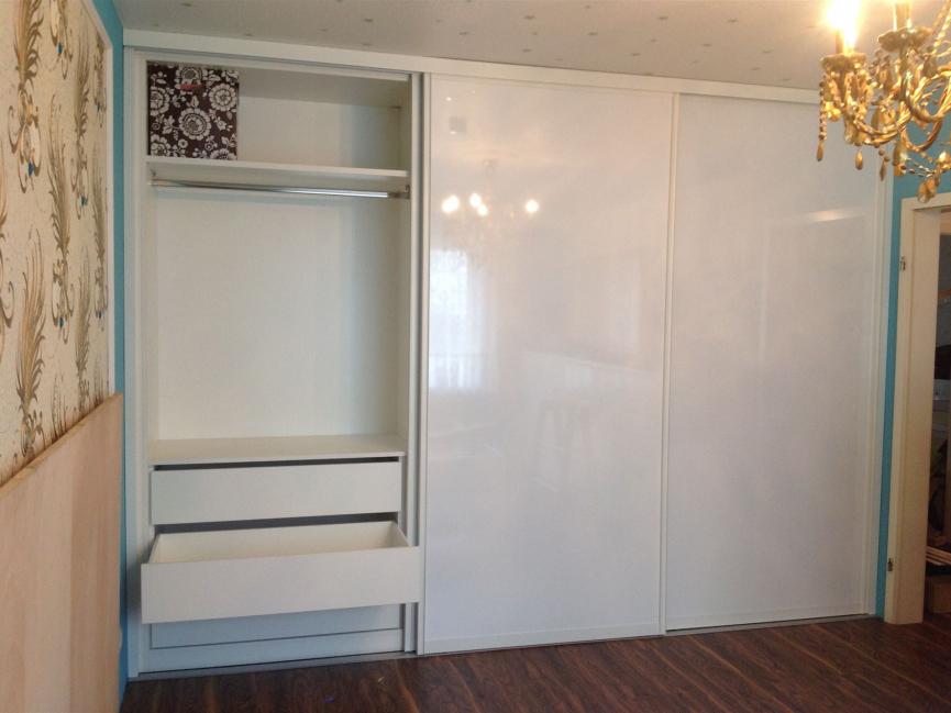 Schiebetüren Kleiderschrank, hochglanz, mit eingebauten Schubläden